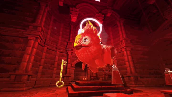 I felt that the game was truly rewarding each time I played, honestly for so long I was bad, I had a -29 loss streak but I kept coming back eager to go further and further. As you keep spending money in the shops you build up loyalty points that unlock more to buy, for example, the weapons guy he will have a randomised selection each time, eventually, he gets better weapons as you keep giving him coins. The random giant chick that sells armour, power-ups and health upgrades also get similar loyalty points and soon becomes the breath of fresh air you need in-between each play-through with his little charming tunes. You’ll also find keys on levels to unlock chests which give you all sorts of epic power-ups or weapons to beat your foes. These can range from a mind flaying hat that damages enemies close to you, a life-saving shield that regenerates portions of health (this helped me beat it), boots that explode each time you hit the ground and so much more, all goofy and random, some helpful, some not so much. It’s the utter randomness of each play-through that gives this game ultimate replayability.