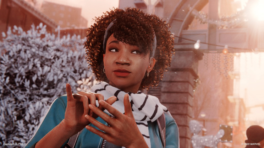 When I wasn’t sticking enemies to buildings and stopping every two minutes to use Photomode, I was falling in love with the game’s rich variety of characters and even more so, how diverse they were. The entire main cast consists of POC with of course Miles himself being the son of an African-American dad and a Puerto Rican mother. I loved seeing Miles’ culture and background shine in this game, especially during phone calls with his mother, Rio when they joked back and forth in Spanish. Not only that but I have to take a second to talk about Hailey – a deaf street-artist who communicates solely using ASL (and is also portrayed by a deaf Voice Actor.) She felt like an integral part of the game despite being a secondary character and it fills me with hope to see disabilities feature more in popular games.